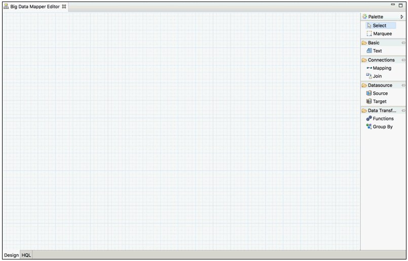 The Big Data Mapper Editor opens as a tab in the iBDI workspace, as shown in the following image.
