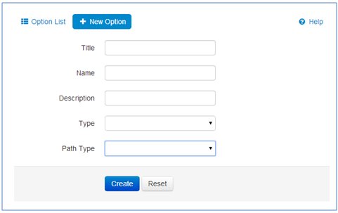 Administrators can create a new option on the New Option page by clicking the corresponding button on the Option List page, as shown in the following image.