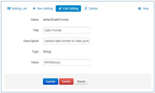 The Edit Setting page enables administrators to change the properties of a setting. Administrators can navigate to that page by clicking the corresponding button on the Show Setting page, as shown in the following image.