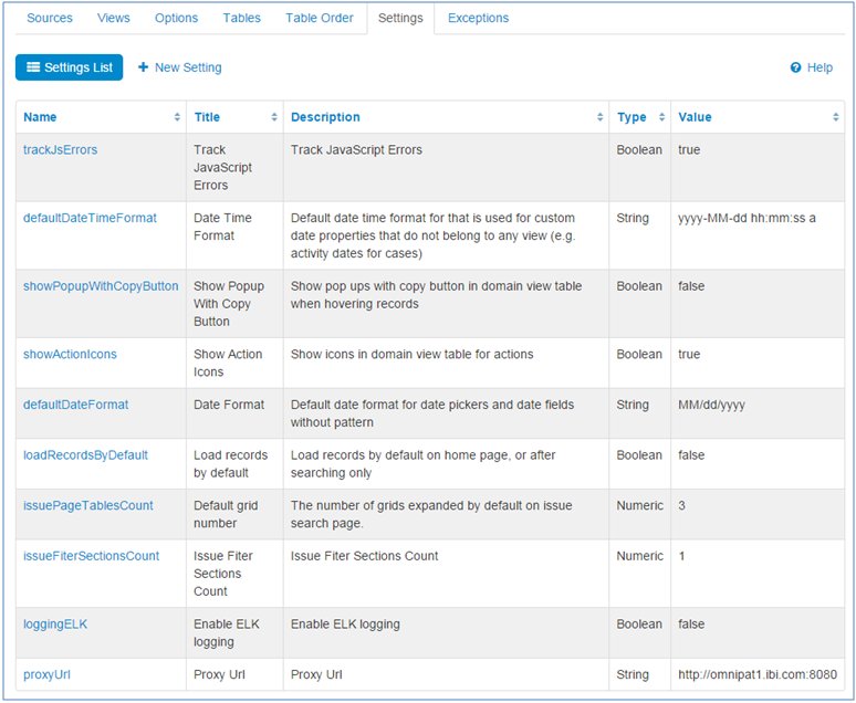 The list of all settings is displayed on the Setting List page, as shown in the following image.