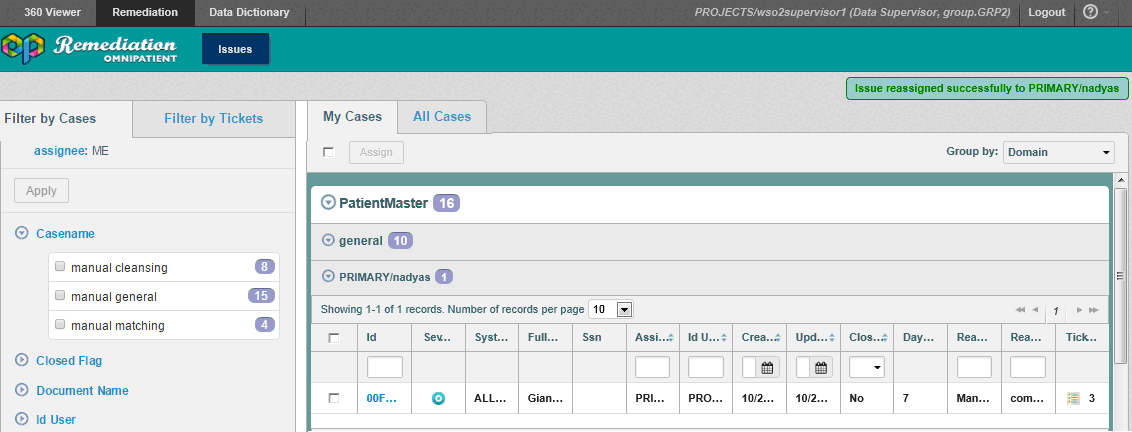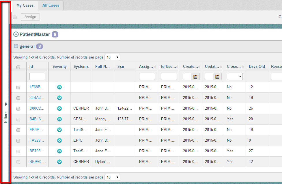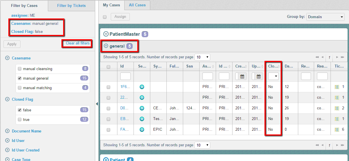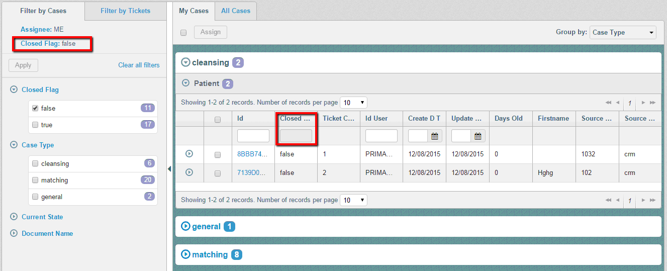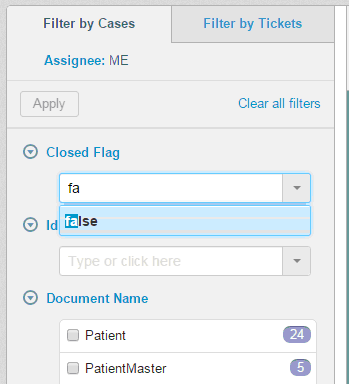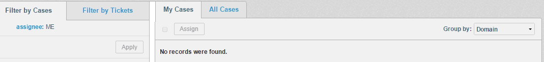 Note: In the My Cases tab, data is already filtered by Assignee, and this filter cannot be discarded.
