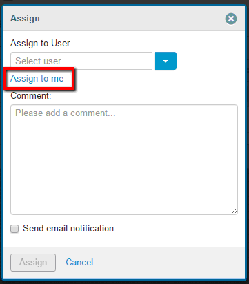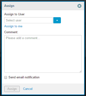 The Issues page gives you the opportunity to bulk assign cases to different users. By default, the Assign button is disabled. To enable it, at least one issue must be selected by selecting the check box near the issue that needs to be reassigned. If all issues available on the page need to be reassigned, select the top check box that allows selecting all issues on the page, and then click the Assign button.
