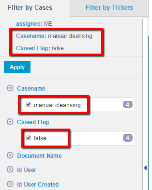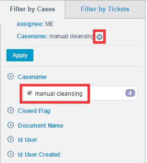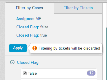 If you applied filtering by cases and added some filtering by tickets, and then changed everything to filter by cases, the filtering by tickets will be discarded by clicking Apply (the appropriate hint will be displayed by hovering the cursor over the Apply button):