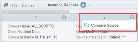 For each instance record, you can compare all of its values with values from the source system. Open an instance record context menu by clicking on the icon next to the instance record title and select Compare Source, as shown in the following image.